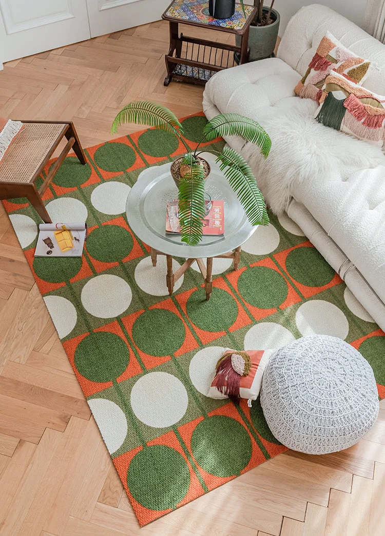 Austin Retro Circle Green and Orange Wool Rug