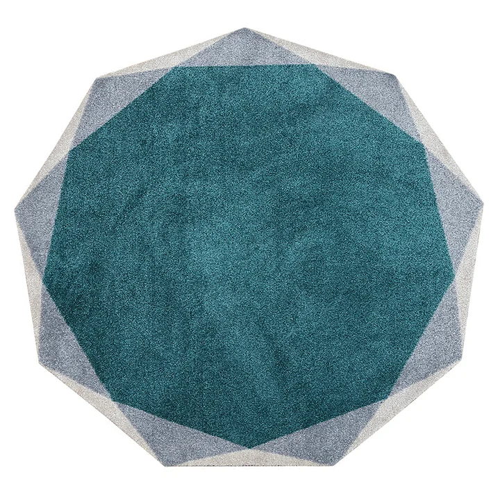 Ok, we’ll confess we had to look up what you call a nine-sided shape! It’s called a “nonagon” or 9-sided polygon. Anyway, it makes for truly unique shape for a rug. The combination of its beautiful shape and stunning teal and grey colour, make this a truly unique rug. Great as a statement piece with a coffee table or or even dining table. Teal is also quite a versatile and easy colour to match. With a soft acrylic plush pile, it’s available in three standard sizes.