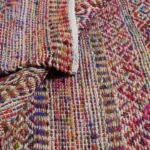 This rug has a cool bohemian chic feel to it. Made of Recycled Silk and hemp, it’s truly unique and a statement piece. It brings warmth and vibrancy to a room. It works well with eclectic and scandinavian style interiors. It’s available in three sizes, or contact us for a custom size quote.