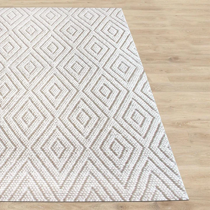 The Yebishu Cream White Rug has beautiful concentric diamond patterns on it along with a great texture. It is hand woven with felt wool and has a natural color. There are no artificial dyes used. It is masterfully woven with intricate workmanship that adds warmth to your home. It has good durability and looks fabulous when used in the living room area or study room. Regularly make use of a soft brush or light vacuum to keep it clean. There are three available sizes of this rug, which are shipped worldwide with no shipping charges.